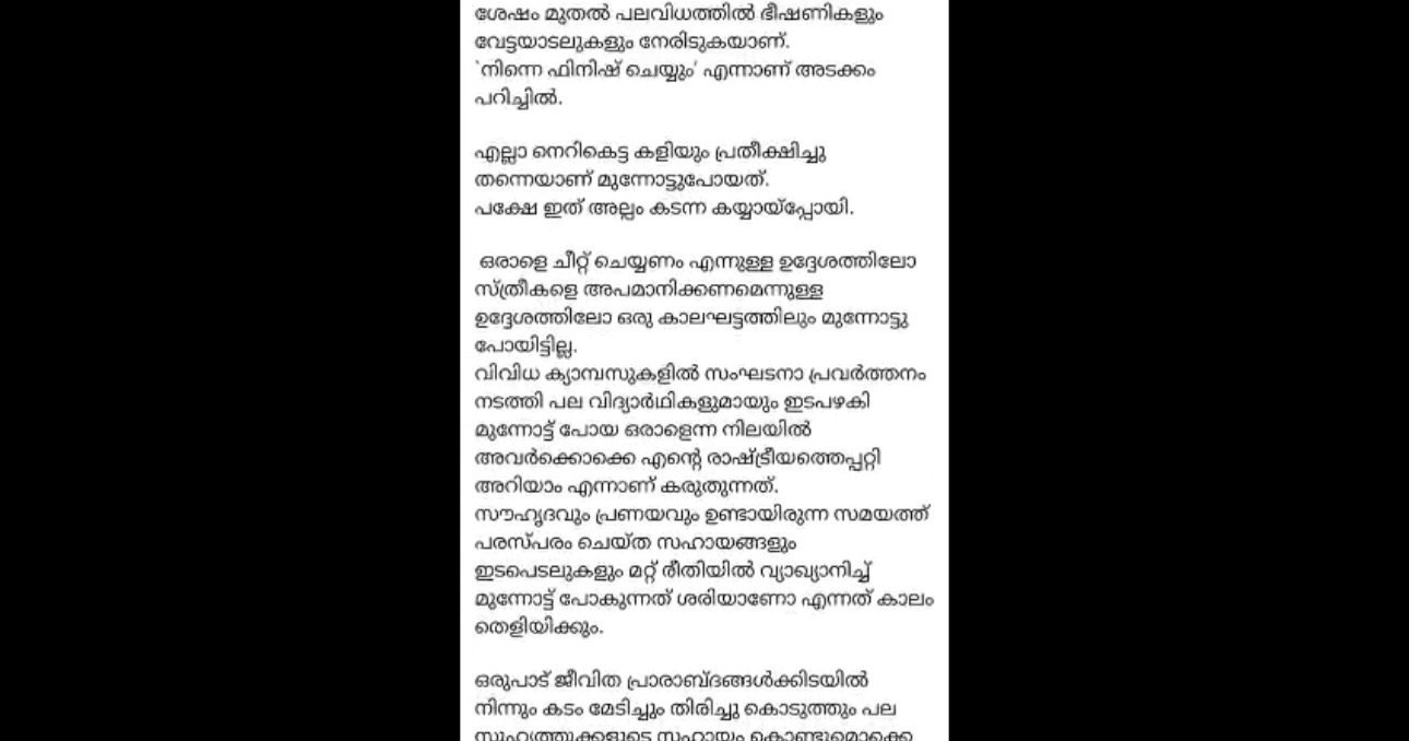 ഫേസ്ബുക്ക് കുറിപ്പിൻ്റെ പൂർണരൂപം