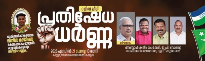 കണ്ണൂർ: അഞ്ചരക്കണ്ടി ദന്തൽ കോളേജ് വിദ്യാർത്ഥി നിതിൻ രാജിൻ്റെ കൊലപാതകവുമായി ബന്ധപ്പെട്ട മുഴുവൻ പ്രതികളെയും അറസ്റ്റ് ചെയ്യുക , മുഴുവൻ പ്രതികളെയും കോളേജിൽ നിന്നും പുറത്താക്കുക തുടങ്ങിയ ആവശ്യങ്ങൾ ഉന്നയിച്ചു കൊണ്ട് ദളിത് ലീഗ് സംസ്ഥാന കമ്മറ്റിയുടെ ആഭിമുഖ്യത്തിൽ നാളെ(ചൊവ്വ) ദന്തൽ കോളേജ് പരിസരത്ത് പ്രതിഷേധ ധർണ്ണനടത്തും. പകൽ 10 മണിക്ക്നടക്കുന്ന ധർണ്ണ മുസ്ലിം ലീഗ് ജില്ലാ പ്രസിഡന്റ് അഡ്വ: അബ്ദുൾ കരിം ചേലേരി ഉദ് ഘാടനം ചെയ്യും. മുസ്ലിം ലീഗ്- ദളിത് ലീഗ് നേതാക്കൾ പങ്കെടുക്കും.
