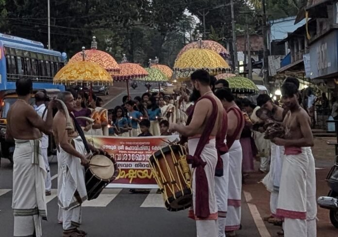 കൊളച്ചേരി: കൊളച്ചേരി ഊട്ടുപുറം ഒഴലൂർ ശ്രീ മഹാവിഷ്ണു ക്ഷേത്രത്തിലെ ഈ വർഷത്തെ വൈശാഖോത്സവത്തിന് ഭക്തിസാന്ദ്രമായ തുടക്കമായി. ബുധനാഴ്ച വൈകുന്നേരം കരിങ്കൽക്കുഴി അയ്യപ്പൻ ഭജന മഠത്തിൽ നിന്നും ആരംഭിച്ച കലവറ നിറയ്ക്കൽ ഘോഷയാത്രയോടെയാണ് ഉത്സവ പരിപാടികൾക്ക് തുടക്കം കുറിച്ചത്. തുടർന്ന് ക്ഷേത്ര സന്നിധിയിൽ തിരുവാതിരയും കൈകൊട്ടിക്കളിയും അരങ്ങേറി.