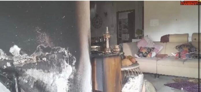 • ഇന്ന് പുലർച്ചെയാണ് സംഭവം. പുലർച്ചെ എഴുന്നേറ്റ് വിഷുക്കണി കണ്ടതിന് ശേഷം കുടുംബാംഗങ്ങൾ നിലവിളക്കുകൾ കെടുത്താതെ വീണ്ടും കിടന്നുറങ്ങുകയായിരുന്നു. ഇതിനിടയിലാണ് വിളക്കിൽ നിന്ന് തീ പടർന്നതെന്ന് കരുതുന്നു. വീടിന്റെ ഹാളും അവിടെയുണ്ടായിരുന്ന ഉപകരണങ്ങളും പൂർണ്ണമായും കത്തിനശിച്ചു. തീ പടർന്നതോടെ വീടിന്റെ ജനൽച്ചില്ലുകൾ പൊട്ടിത്തെറിച്ചു.